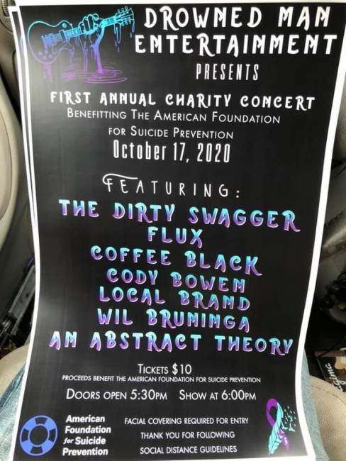 Drowned Man Entertainment presents a night of The Shoals area’s best music to benefit American Foundation For Suicide Prevention.