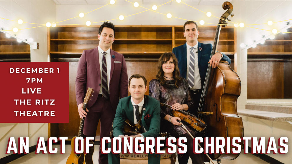 Acclaimed acoustic band Act of Congress will perform their unique blend of American roots music mixed with traditional Christmas music at the Ritz Theatre on Friday, Dec. 1, at 7 p.m.