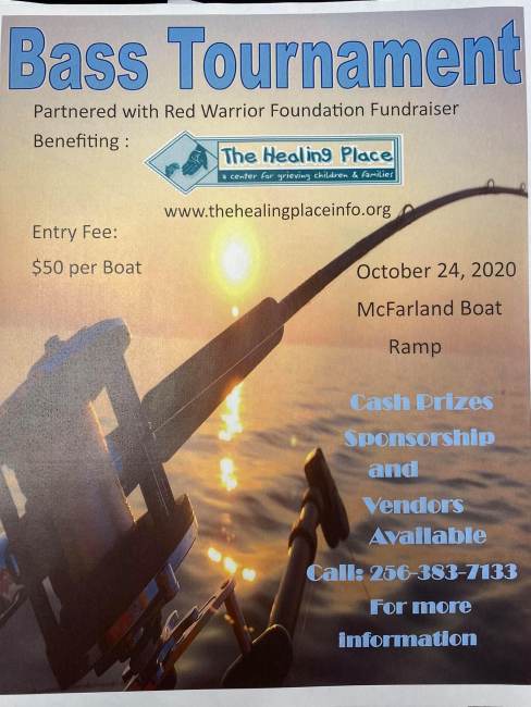 On October 24, 2020, The Healing Place is hosting its first ever Bass tournament and partnering with the Red Warrior Foundation and Chase Murphy as Tournament Director at McFarland Boat Ramp. We are opening the tournament to anyone who wants to fish including high school teams as well as professional fishermen who want to support a good cause. We also plan to give cash prizes and plaques to be able to draw people to the event. We have had to cancel two of our regular fundraisers this summer due to COVID 19 and are excited to promote this event as boating and fishing has benefits for social distancing.