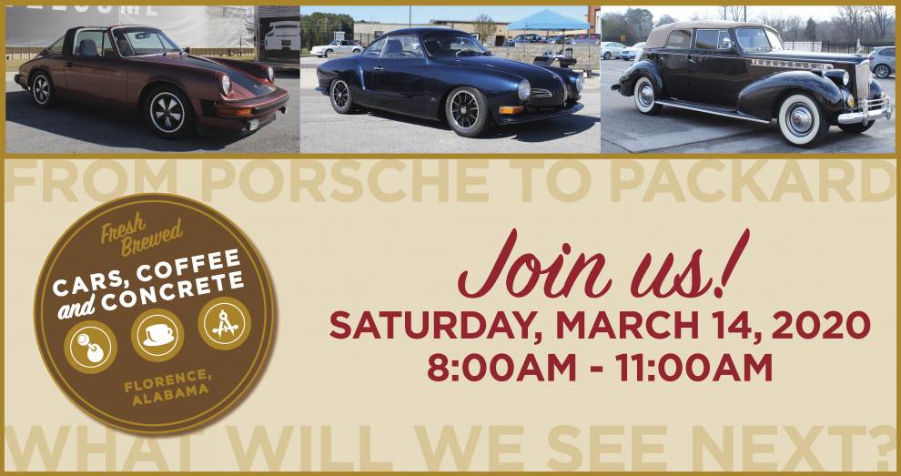 Car enthusiasts, we invite you, your family, and friends to join us for our March Cars, Coffee and Concrete event. Coffee will be brewing and motors will be running. There's no telling what type of cars you'll see, from Porsche to Packard. Be sure to register for our monthly giveaway! Email office@trisslsportscars.com or call 256.766.0911 for more information.