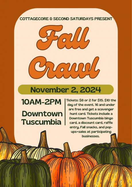 Cottagecore and Second Saturdays are so excited to present the Fall Crawl! Join them for a day full of fun with Tuscumbia Bingo Board!
