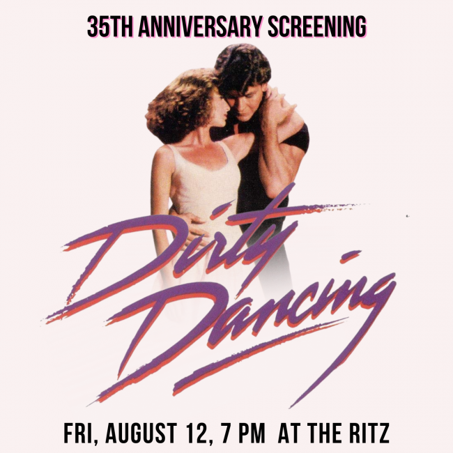 The Ritz Theatre invites you to have the time of your life with a 35th-anniversary screening of Dirty Dancing on Friday, Aug 12, at 7 p.m. Tickets are $10 and are available at tennesseevalleyarts.org or at the door.