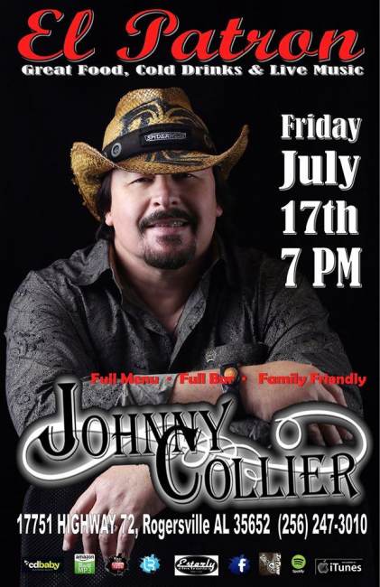 Join us in Rogersville at El Patron Mexican & Japanese Restaurant and Bar for some awesome food, cold drinks, family friendly country music with Johnny Collier & The Misbehaviators. We'll get the music started at about 7 PM but you'll want to come early for good seating and to have some dinner before the show! Don't forget to invite your friends and tell your family, neighbors and co-workers all about it!