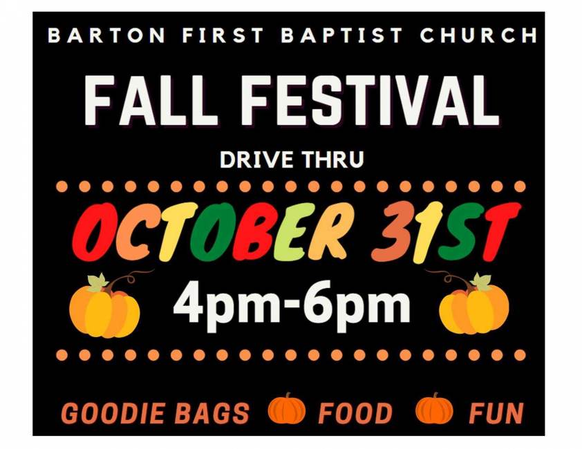 Join us Saturday, October 31, 2020 for our first ever Fall Festival Drive Thru!!