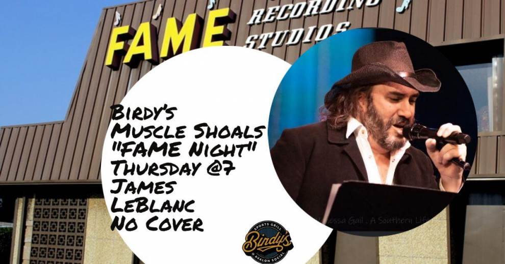 Join us for Fame Night-Thursday 7 pm featuring James LeBlanc Live@ Birdy's-Muscle Shoals, Alabama- the hit recording capital of the world.