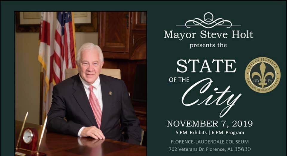 Florence Mayor Steve Holt has announced that the State of the City program will be held on Thursday, November 7, at the Florence-Lauderdale Coliseum.