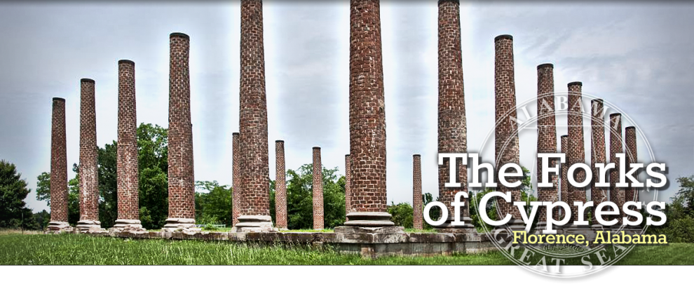 The Forks of Cypress Historic Home was one of the oldest antebellum mansions in Alabama. It was built in 1822 by James Jackson, one of the first settlers in Lauderdale County and a friend of Andrew Jackson. Bring your lawn chairs for the beginning portion of the tour. Park along the road or enter the gate to park in the field leading to the columns.