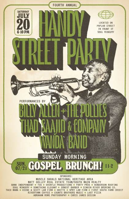 Handy Street Party is the first Saturday of the WC Handy Music Festival in Florence, Alabama. They bring the best local, original music to the people free of charge! Come party with them on Poplar Street to celebrate Handy and the best music in The Shoals!