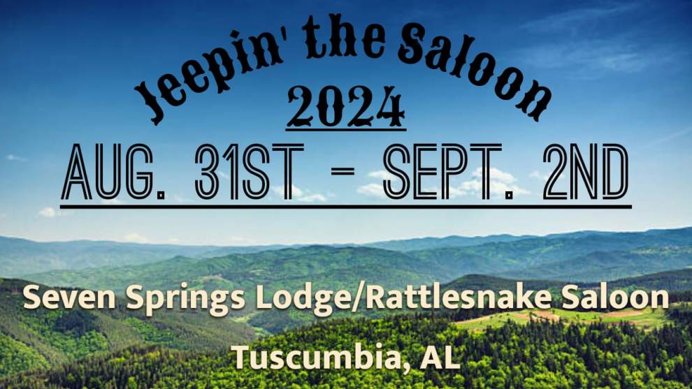Join us for 3 days of off-roading family friendly fun! We have over 3,000 acres of trails,vendors,live music,guided night/day rides, mud bog, bonfire night,recovery/preparedness seminar,camping,fireworks and so much more! With this being our 5th year we are going all out! There is so much to do at Jeepin' the Saloon. From miles of trails to the events, but the Seven Springs property has so much to offer . The natural beauty should also be seen. The wave rock, bald knob, the 3 sisters rock carving, waterfall, and bathing pool. You can pull off while on the trails and have a picnic with your family next to the creek that runs along some of the trails and through the property. If you get tired of driving you can always go on a relaxing hike you might possibly find the Indian shelters. We will have points of interest marked on the map. Take your kids up to the play ground to play. We have plenty of camping too! Jeepin' the Saloon is a great family friendly vacation for the Labor day weekend. Plus, you can have dinner or lunch in the cave at the famous Rattlesnake Saloon! The back roads ride this year will take you off property, to explore the surrounding area, including the ceder creek reservoir. ( where we do most of our fishing) Our family looks forward to seeing you and yours this year!