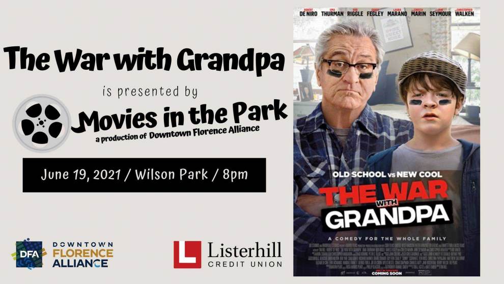 Come enjoy "The War with Grandpa" at Movies in the Park, a production of Downtown Florence Alliance.