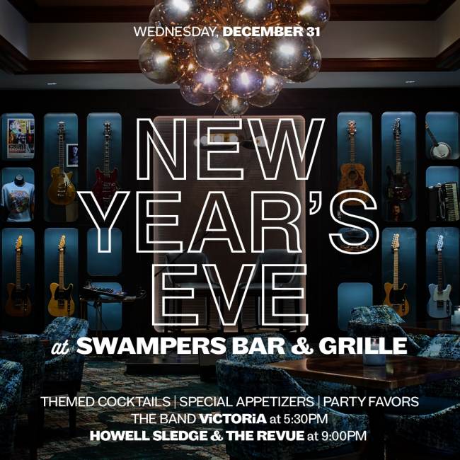 Ring in 2026 at Swampers Bar & Grille! The Band ViCTORiA will begin at 5:30pm and Howell Sledge & The Revue will take over at 9:00pm. There will be New Year themed cocktails, special appetizers, party favors and a midnight countdown!