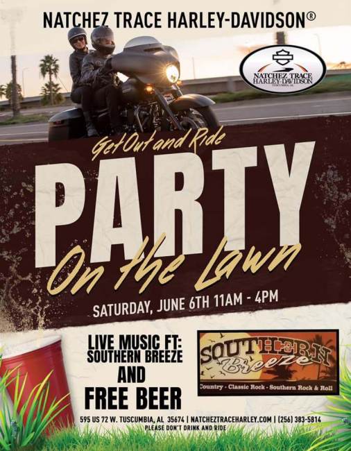 Get out and ride and while your out stop by Natchez Trace Harley-Davidson. Listen to a free concert by Southern Breeze! Have a cold beer and hot dog on us and hang out with family.