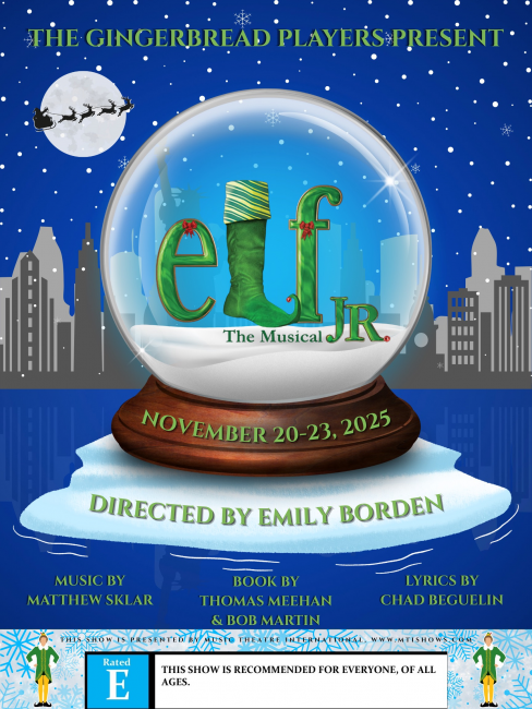 Buddy, a young orphan, mistakenly crawls into Santa's bag of gifts and is transported to the North Pole. The would-be elf is raised, unaware that he is actually a human, until his enormous size and poor toy-making abilities cause him to face the truth. With Santa's permission, Buddy embarks on a journey to New York City to find his birth father and discover his true identity. Faced with the harsh reality that his father is on the naughty list and that his half-brother doesn't even believe in Santa, Buddy is determined to win over his new family and help New York remember the true meaning of Christmas. Based on the cherished New Line Cinema hit, Elf JR. features songs by Tony Award-nominees, Matthew Sklar and Chad Beguelin, with a book by Tony Award-winners, Thomas Meehan and Bob Martin. Show dates are November 20-23, 2025 at The Shoals Theatre. This show is directed by Emily Borden.