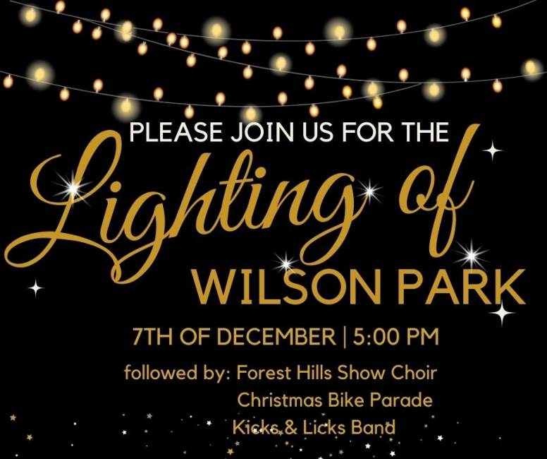 The Forest Hills Show Choir will perform immediately following the lighting of the park. Happi Pappi Food truck will be on-site for beignets and hot chocolate or coffee. Kick and Licks band will also be performing. Awards will be given for the best decorated bikes. To enter the bike parade register at: FLPL.Eventbrite.com