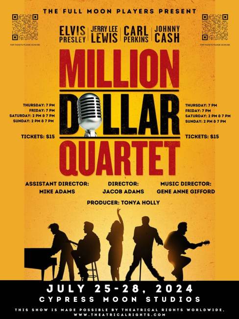 The play based on a day in music history at Sun Records that brought four of our all time favorite singers together, Elvis Presley, Carl Perkins, Johnny Cash, and Jerry Lee Lewis. Be a part of the magic as we bring to you The Million Dollar Quartet!