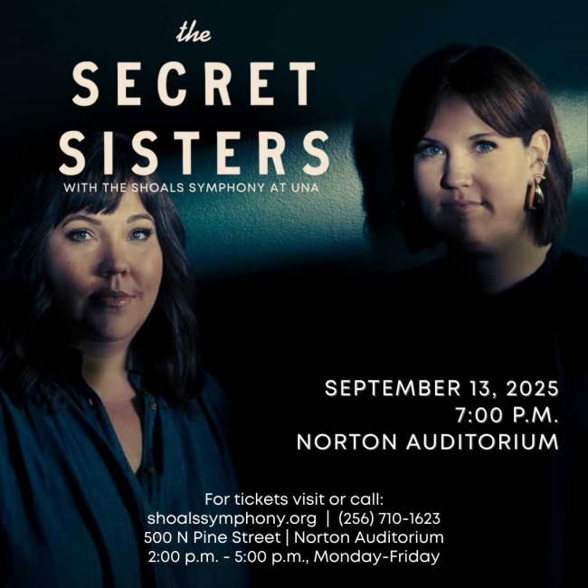 Join the Shoals Symphony at UNA for a special evening with The Secret Sisters. The Grammy-nominated Americana duo from the Shoals will be performing their original songs with debut orchestral accompaniment from the Shoals Symphony. This is not one to be missed!