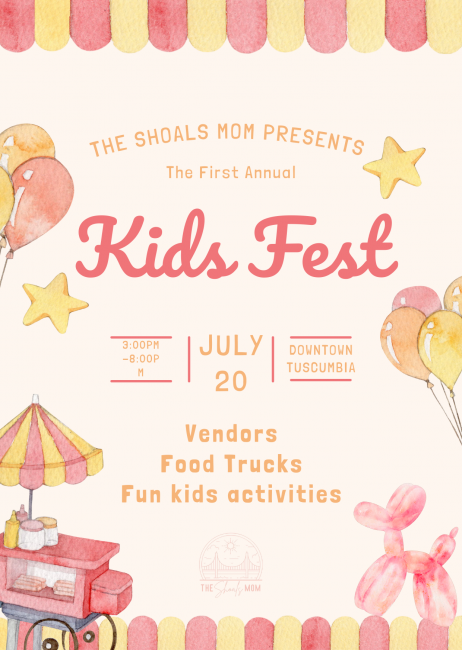 Come one, come all to The First Annual Kids Fest in downtown Tuscumbia! There will be kid friendly vendors, food trucks, and fun activities!