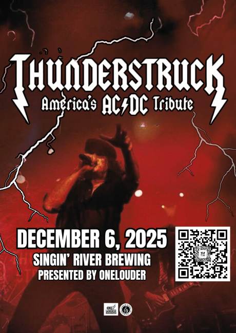 The countdown is officially on — Thunderstruck: America’s AC/DC Tribute is hitting Singin’ River Brewing Co. on Friday, December 6th, presented by OneLouder!